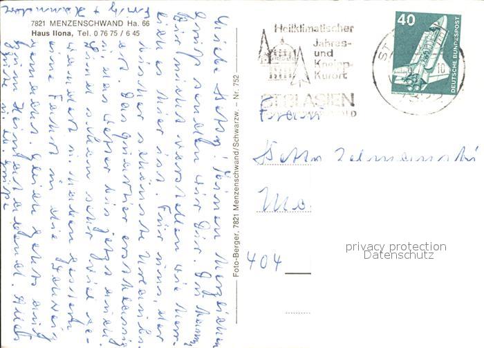 71859466 alte Postkarte Menzenschwand Haus Ilona postalisch gelaufen KatCode: 11110008337097