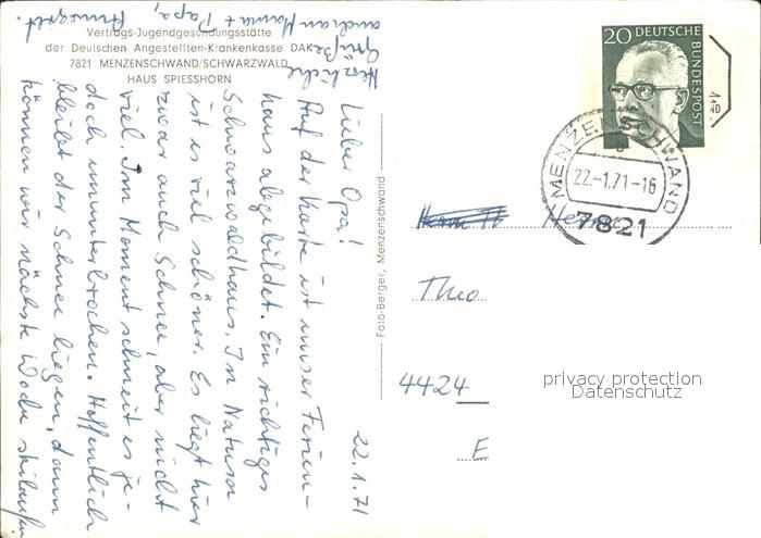 71845660 alte Postkarte Menzenschwand Haus Spiesshorn Jugendgesundheitsstaette postalisch gelaufen Erhaltung siehe scans KatCode: 11110008337097