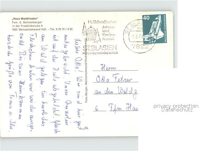 72434825 alte Postkarte Menzenschwand Haus Waldfrieden mit Trachtengruppe postalisch gelaufen Erhaltung siehe scans KatCode: 11110008337097