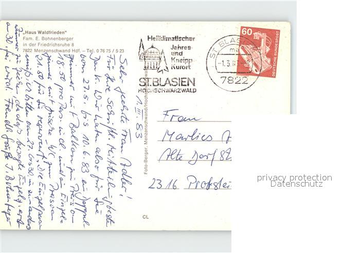 72217368 alte Postkarte Menzenschwand Haus Waldfrieden Trachten postalisch gelaufen Erhaltung siehe scans KatCode: 11110008337097