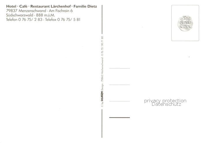 73760900 Menzenschwand Hotel Cafe Restaurant Laerchenhof Gaststube Zimmer Schlittenfahrt postalisch nicht gelaufen Erhaltung siehe scans [WerneD78] KatCode: 11110008337097