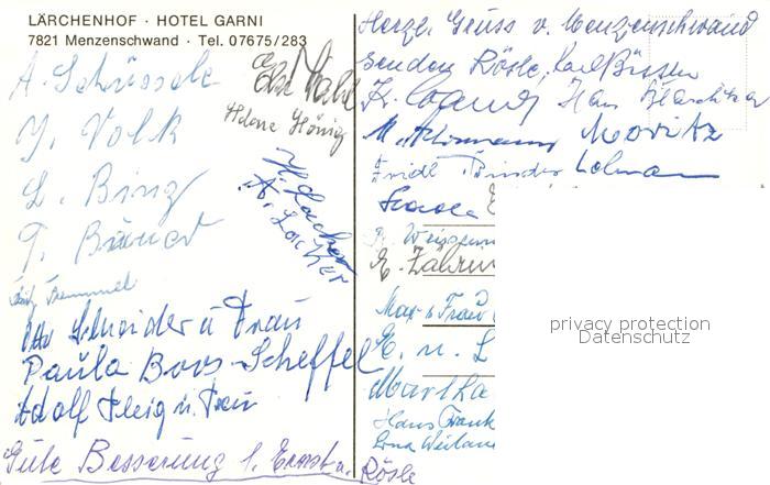 72969790 Menzenschwand Hotel Garni Laerchenhof postalisch nicht gelaufen Erhaltung siehe scans [LiesaD40] KatCode: 11110008337097