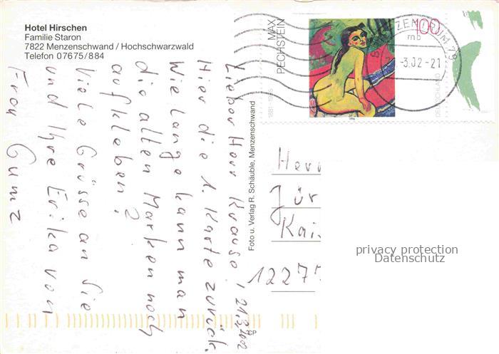 74043549 alte Postkarte Menzenschwand Hotel Hrschen Café Restaurant Winter im Schwarzwald postalisch gelaufen Erhaltung siehe scans [FriedD77] KatCode: 11110008337097