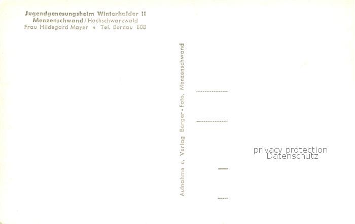 73763511 Menzenschwand Jugendgenesungsheim Winterhalder II postalisch nicht gelaufen Erhaltung siehe scans [FriedD77] KatCode: 11110008337097