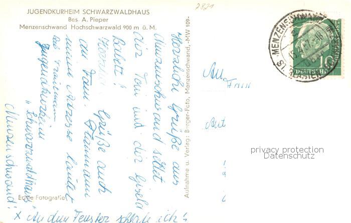 73762601 alte Postkarte Menzenschwand Jugendkurheim Schwarzwaldhaus postalisch gelaufen Erhaltung siehe scans [WerneD78] KatCode: 11110008337097