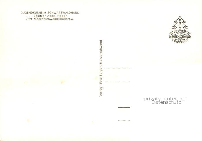 73836603 Menzenschwand Jugendkurheim Schwarzwaldhaus postalisch nicht gelaufen Erhaltung siehe scans [WerneD78] KatCode: 11110008337097