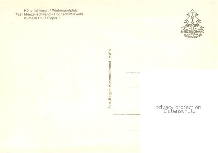 73643506 Menzenschwand Kurheim Haus Pieper postalisch nicht gelaufen Erhaltung siehe scans [WerneD78] KatCode: 11110008337097