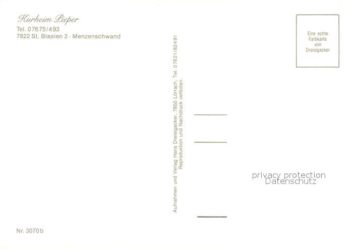 73643507 Menzenschwand Kurheim Pieper postalisch nicht gelaufen Erhaltung siehe scans [WerneD78] KatCode: 11110008337097