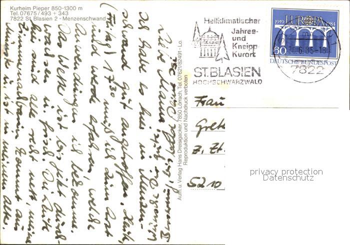 71909210 alte Postkarte Menzenschwand Kurheim Pieper postalisch gelaufen Erhaltung siehe scans KatCode: 11110008337097