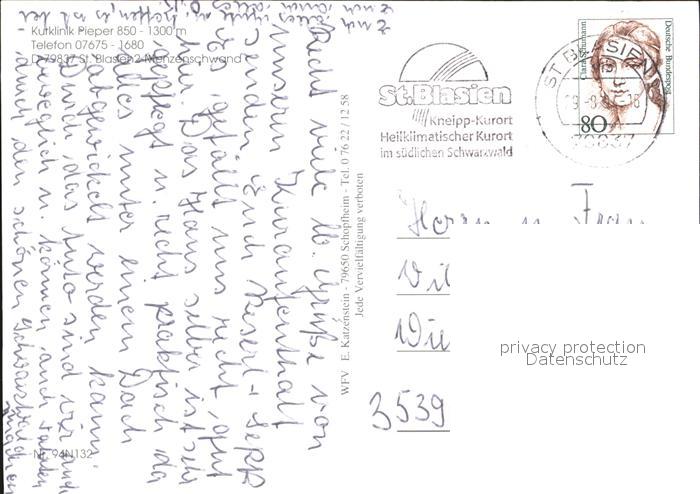 72542899 alte Postkarte Menzenschwand Kurklinik Pieper Teilansicht Hallenbad postalisch gelaufen Erhaltung siehe scans [AndreD76 kv012box] KatCode: 11110008337097