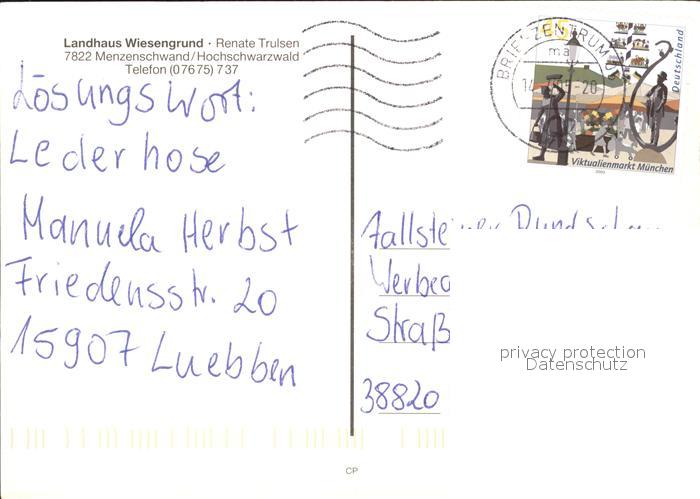 71928719 alte Postkarte Menzenschwand Landhaus Wiesengrund postalisch gelaufen Erhaltung siehe scans KatCode: 11110008337097