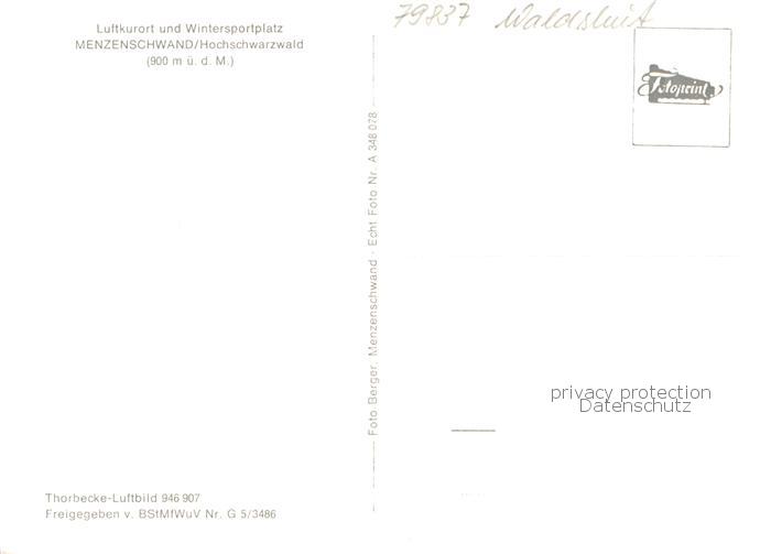 73768851 Menzenschwand Luftkurort Wintersportplatz im Schwarzwald Blick zum Feldberg postalisch nicht gelaufen Fliegeraufnahme Erhaltung siehe scans [FriedD77] KatCode: 11110008337097