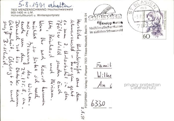 72395416 alte Postkarte Menzenschwand mit Wasserfall postalisch gelaufen Erhaltung siehe scans KatCode: 11110008337097