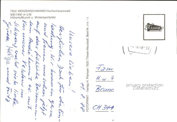 72564488 Menzenschwand Panorama postalisch nicht gelaufen Erhaltung siehe scans [AndreD76] KatCode: 11110008337097