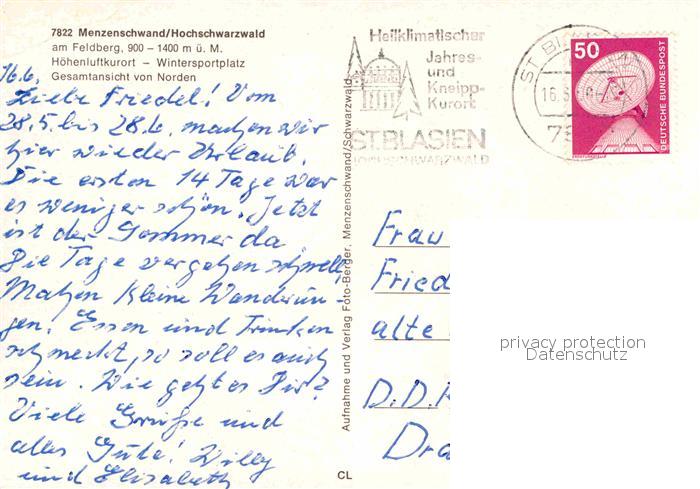 72616414 alte Postkarte Menzenschwand Panorama Hoehenluftkurort Hochschwarzwald postalisch gelaufen Erhaltung siehe scans [FriedD77] KatCode: 11110008337097