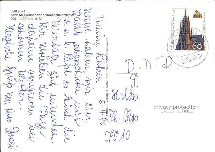 72504961 alte Postkarte Menzenschwand Panoramen postalisch gelaufen Erhaltung siehe scans KatCode: 11110008337097