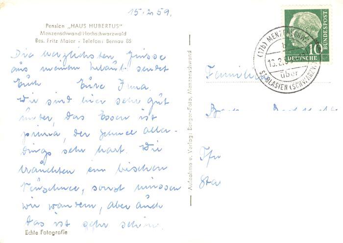73894575 alte Postkarte Menzenschwand Pension Haus Hubertus postalisch gelaufen Erhaltung siehe scans [WerneD78] KatCode: 11110008337097