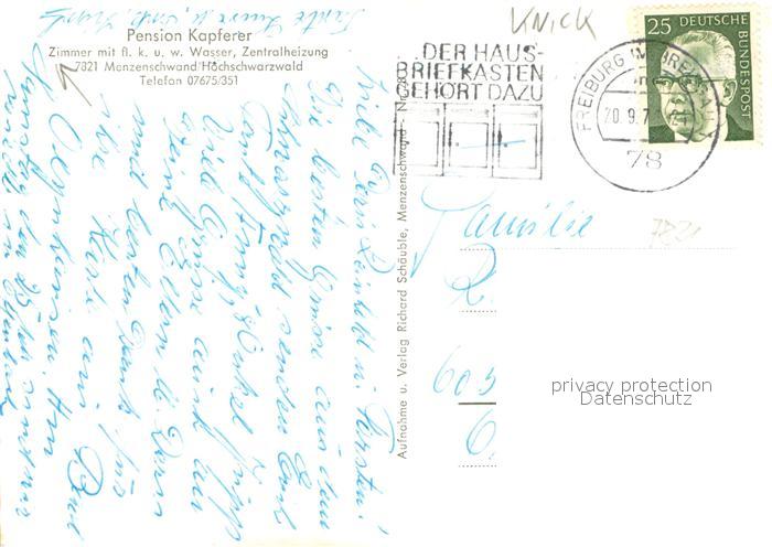 73746968 alte Postkarte Menzenschwand Pension Kapferer Aussenansicht postalisch gelaufen Erhaltung siehe scans [LiesaD40] KatCode: 11110008337097