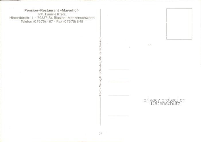 72496929 Menzenschwand Pension Restaurant Mayerhof Schwarzwald postalisch nicht gelaufen Erhaltung siehe scans KatCode: 11110008337097