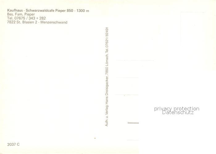 73644351 Menzenschwand Schwarzwald Cafe Pieper Panorama Schwarzwald postalisch nicht gelaufen Erhaltung siehe scans [FriedD77] KatCode: 11110008337097
