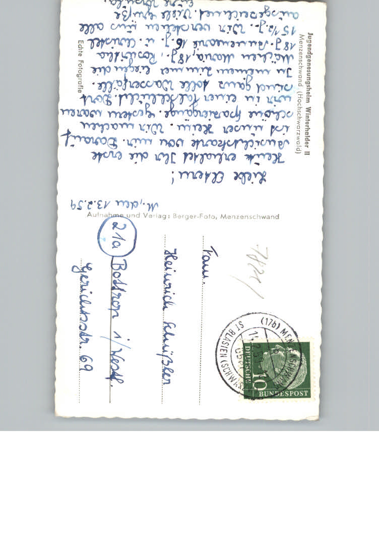 31154033 Menzenschwand Winter-Karte postalisch nicht gelaufen KatCode: 11110008337097
