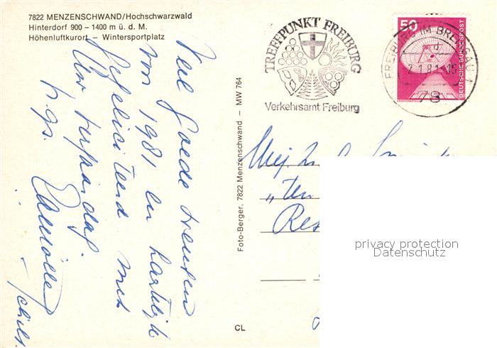 72944638 alte Postkarte Menzenschwand Winterpanorama Luftkurort im Schwarzwald postalisch gelaufen Erhaltung siehe scans [FriedD77] KatCode: 11110008337097