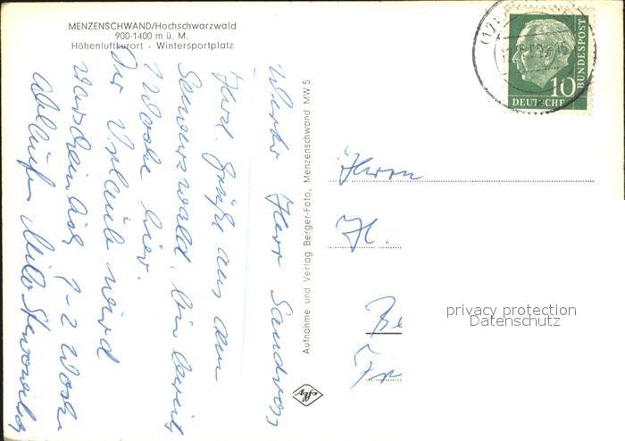 72472764 alte Postkarte Menzenschwand Winterpanorama postalisch gelaufen Erhaltung siehe scans KatCode: 11110008337097