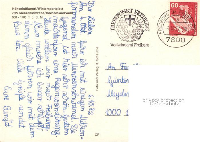 73575712 alte Postkarte Menzenschwand postalisch gelaufen Erhaltung siehe scans [LiesaD40] KatCode: 11110008337097
