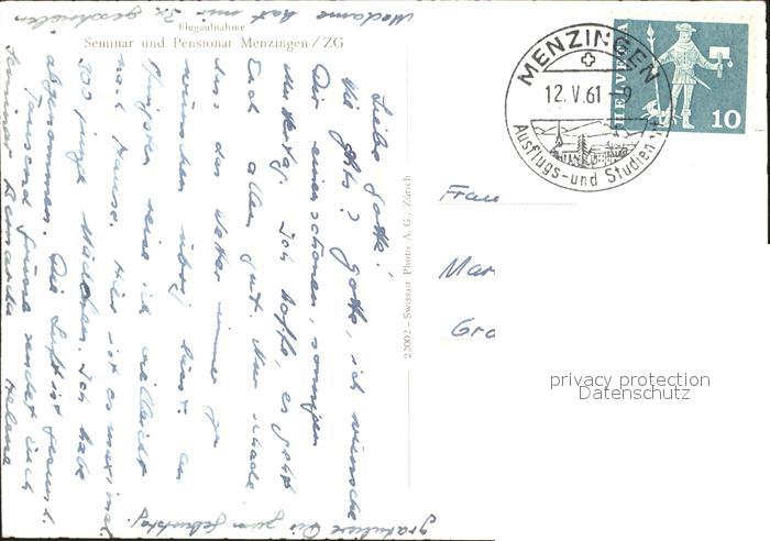 11655067 alte Postkarte Menzingen Zug Seminar und Pensionat Fliegeraufnahme postalisch gelaufen Erhaltung siehe scans KatCode: 11470250855996