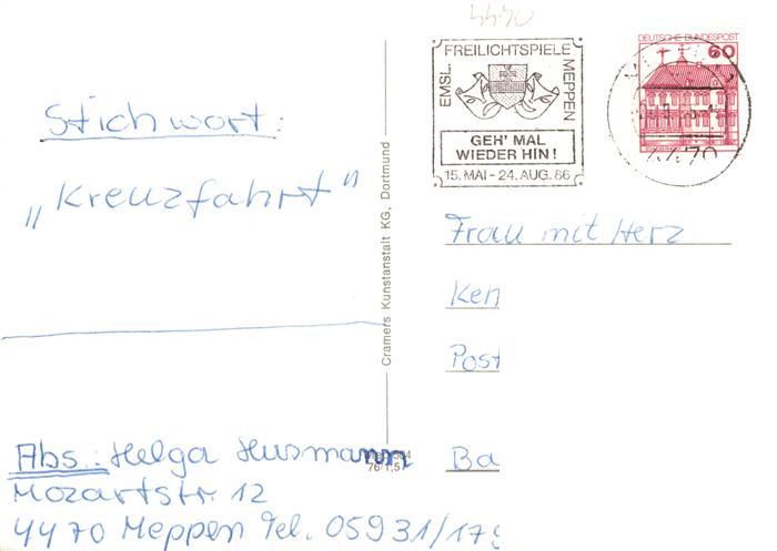 73933118 Meppen Ems Campingplatz Gustav Adolf Kirche Propstei Kirche Paulus Kirche Berufsschulzentrum Freibad Rathaus Musikschule postalisch gelaufen Erhaltung siehe scans [FriedD77] alte Postkarte Frie Katcode 11110003454035