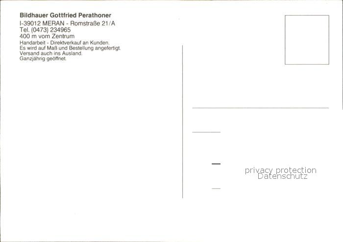 Meran Merano Bildhauer Gottfried Perathoner postalisch nicht gelaufen Erhaltung siehe scans