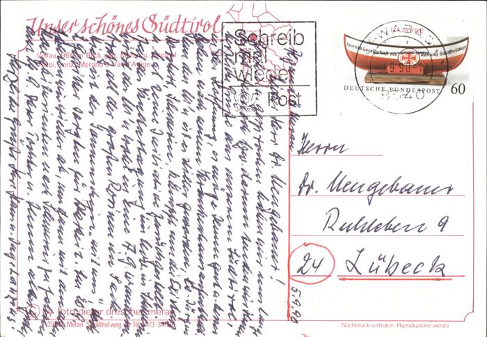 old postcard Meran Merano Blick vom Vellau ins Etschtal postalisch gelaufen Erhaltung siehe scans