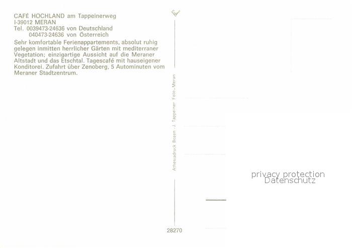 Meran Merano Cafe Hochland Tappeinerweg postalisch nicht gelaufen Erhaltung siehe scans [KathaD81]
