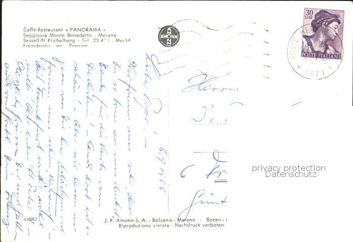 old postcard Meran Merano Cafe Restaurant Panorama Terrasse postalisch gelaufen Erhaltung siehe scans