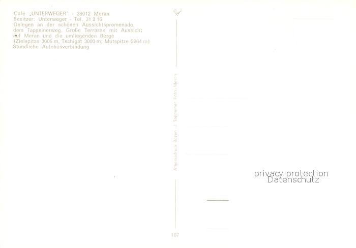 Meran Merano Cafe Unterweger postalisch nicht gelaufen Erhaltung siehe scans [KathaD81]