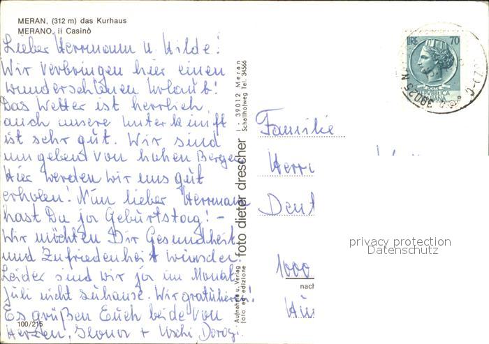old postcard Meran Merano Casino postalisch gelaufen Erhaltung siehe scans