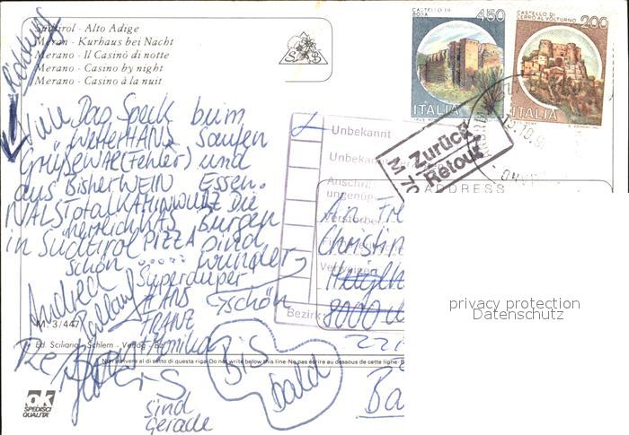 old postcard Meran Merano Casino di notte postalisch gelaufen Erhaltung siehe scans
