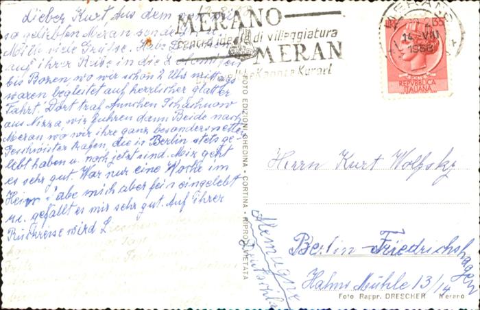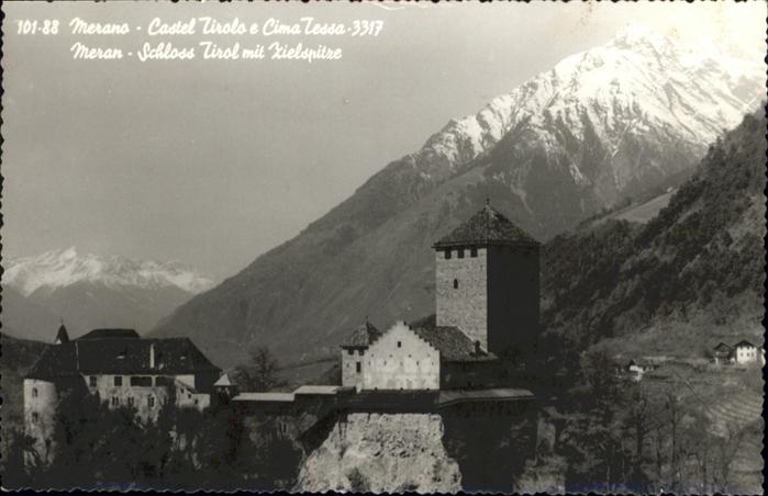 old postcard Meran Merano Castel Tirolo e Cima Tessa Schloss Tirol mit Zielspitze postalisch gelaufen