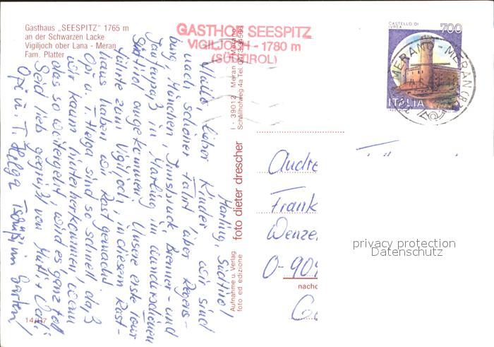 old postcard Meran Merano Gasthaus Seespitz postalisch gelaufen