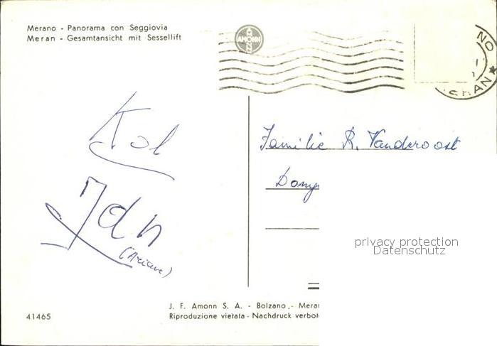 old postcard Meran Merano Gesamtansicht mit Sessellift postalisch gelaufen Erhaltung siehe scans