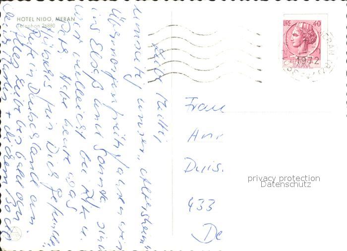 old postcard Meran Merano Hotel Nido postalisch gelaufen Erhaltung siehe scans