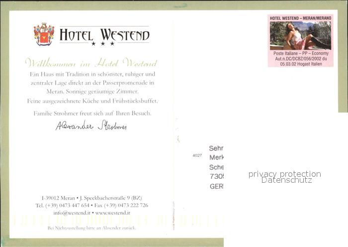 Meran Merano Hotel Westend postalisch nicht gelaufen Erhaltung siehe scans
