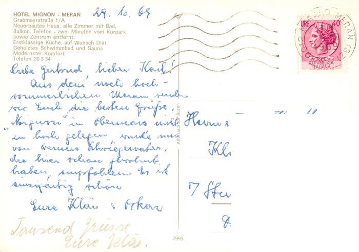73905552 old postcard Meran Merano IT Hotel Mignon Pool postalisch gelaufen Erhaltung siehe scans [WerneD78] KatCode: 11240
