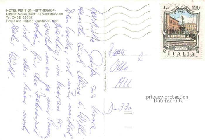 74044067 old postcard Meran MERANO IT Hotel Pension Sittnerhof postalisch gelaufen Erhaltung siehe scans [WerneD78] KatCode: 11240