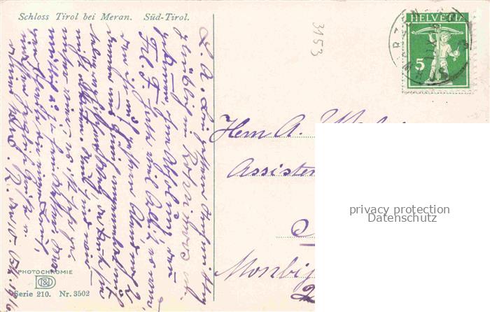 74081197 old postcard Meran MERANO IT Schloss Tirol postalisch gelaufen Erhaltung siehe scans [WerneD78] KatCode: 11240