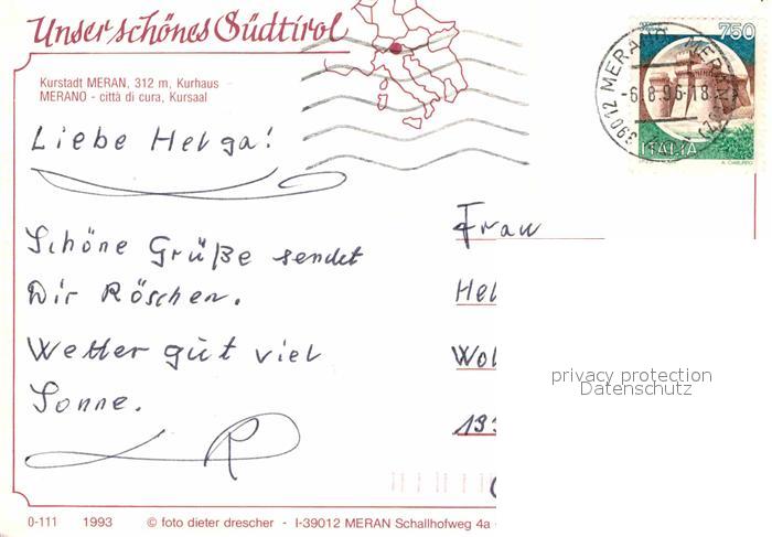 old postcard Meran Merano Kurhaus postalisch gelaufen Erhaltung siehe scans [WerneD78]