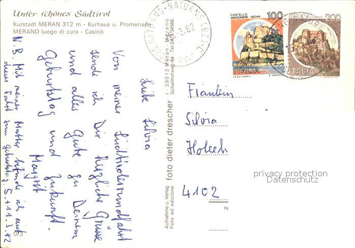 old postcard Meran Merano Kurhaus und Promenade postalisch gelaufen Erhaltung siehe scans