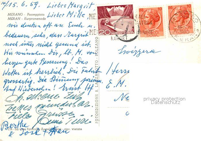 old postcard Meran Merano Kurpromenade postalisch gelaufen Erhaltung siehe scans [KathaD79]
