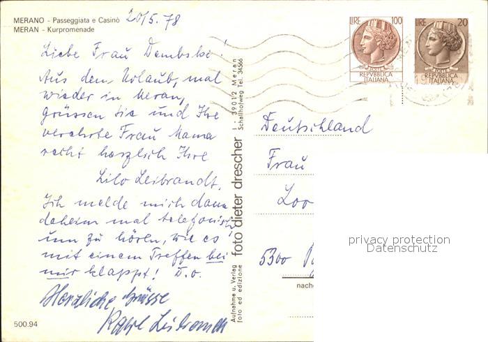old postcard Meran Merano Kurpromenade postalisch gelaufen Erhaltung siehe scans