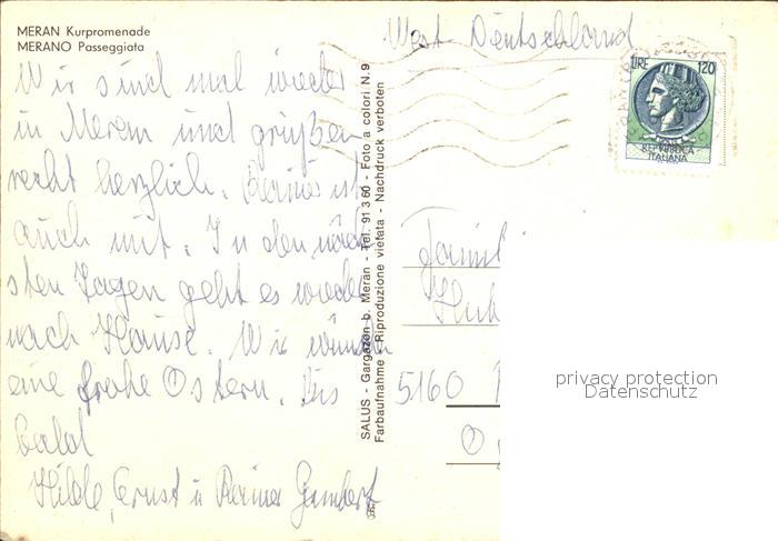 old postcard Meran Merano Kurpromenade postalisch gelaufen Erhaltung siehe scans